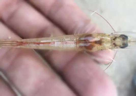 泉州晋江杨老板,养殖南美白对虾3亩,水深一米半,放苗15万,截止到2017年7月15日,杨老板养殖的虾达到 6公分。