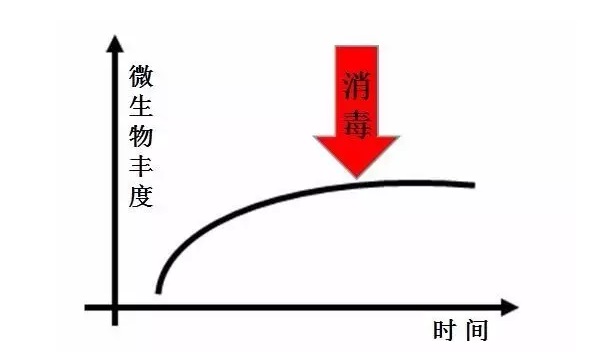 很多养殖者喜欢通过消毒来预防疾病,其实在精养池塘中,需要辩证地看待水体消毒的问题,消毒剂是可以很好地杀灭养殖水体中的病原微生物。但同时也需要注意的是,消毒剂对于微生物的杀灭作用很多都是没有很显著的选择性。进行水体消毒操作的时候,整个水体中的有益菌和病原微生物,都会被消灭到一个非常低的水平,前面那个增长曲线又要重新来过。分解者的数量减少,影响有机物的分解。珠江所林文辉老师经常提的低产养藻,高产养菌也就是这个道理。