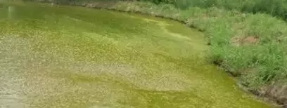 蓝藻水的特征:水面常常具有浮渣或者藻类聚集形成的油膜,一般呈灰蓝色或者铜绿色,水色较正常的绿藻水颜色较为鲜艳,通常水体的pH比较高,晴天下午通常回会到9以上,甚至是超过10。