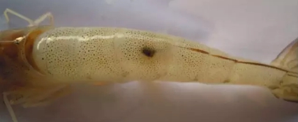 上图示对虾体表出现的黑斑