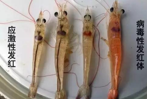 应激性红体:最明显辨认方法是把对虾置于良好的水质下暂养一段时间,将体表发红的虾放到装有原池的溶氧丰富的水体中时红体症状会在10-20分钟内逐渐消失(此现象可用于判别应激性红体和病原性红体)。