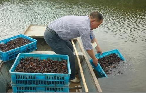 龙虾的捕捞方法较多,可采用地笼网、虾笼等工具进行捕捞。一般将捕捞工具置于养虾沟内,每天清晨取1次虾。通常地笼网捕捞龙虾效果较好。最后在河藕采摘前降低水位,将大部分龙虾捕获。
